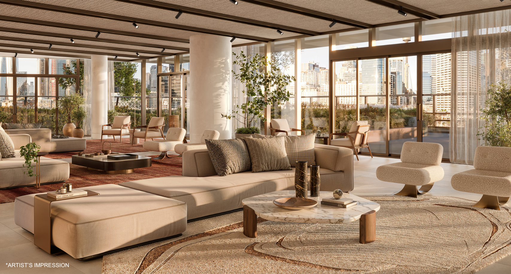 The sense of space and light is accentuated by interiors that spill to a generous corner balcony where the panorama of Sydney is on full display; magnificent by day, magical by night.
